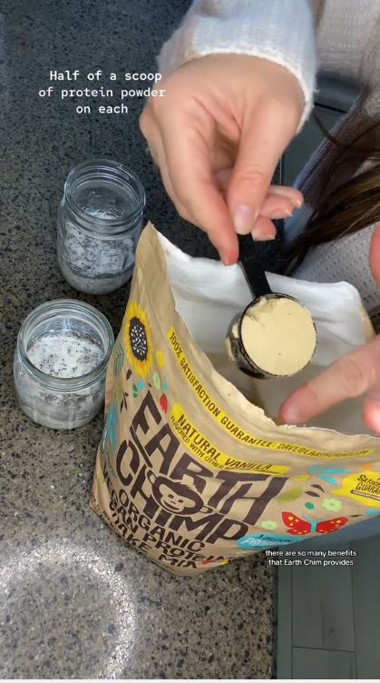 - Add oats, milk, EarthChimp choc, and peanut butter to a microwave-safe bowl.