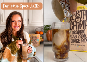 Ready for that extra boost? Try chocolate protein shakes, peanut butter protein smoothies, green smoothie, pumpkin protein treats, almond butter bars, chia pudding, gluten-free muffins, protein ice blends, avocado smoothies, rolled oats, maple syrup snacks, and more ways to use vegan protein powder — with 20g of plant-based protein in every scoop of EarthChimp!